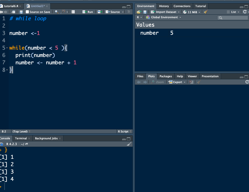 while loop : In R, a while loop iterates as long as a specified condition evaluates to TRUE. Here’s the general syntax: